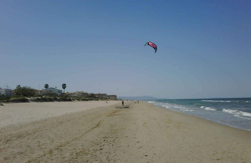 the best part of the apartment is the large front terrace overlooking the common garden This is where most of the life takes place during the summer months. From the terrace you have direct access to the large common garden, a lake-like pool with separate pool for younger children, outdoor jacuzzi and children's playground. There are also two paddle tennis courts next to the entrance. From the garden there is direct access to Les Deveses beach, one of the few natural sand beaches remaining in Alicante. Warm water and a large sand bank under the water makes this beach very safe for children.