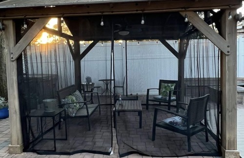 Updated, fully renovated home. Fits 10 comfortably. Has a large dining table, a fireplace in the living room, and an outdoor kitchen. Perfect place to spend time with family after exploring New York.....