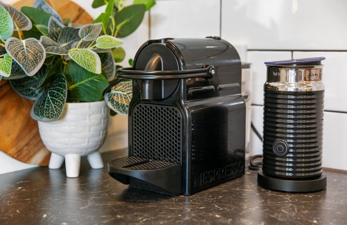 with open space living, the large kitchen is fully equipped and features gas cooktops, electric oven, dishwasher and nespresso coffee machines You will find coffee pods, tea, hot chocolate, sugar and some pantry staples. The kitchen overlooks the 8 seater dining table and living room with a 65inch smart TV.