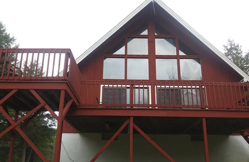 Get away from life's hustle and bustle with this private 3 bedroom house, set well back from a country road in rural New Hampshire. Complete privacy on 33 acres, abutting the owners 44 acre lot, you will see lots of birds, and could see other wildlife such as deer, moose, wild turkeys, owls and maybe even bears. Several nearby lakes offer swimming, boating, and fishing opportunities. Close by Fox State Forest, Pillsbury State Park and the Monadnock Sunapee Greenway offer plenty of hiking trails. Relax on the back deck, or sit around the fire. The main floor of the house offers a master bedroom with a king size bed, a large open livingroom with 2 comfy couches, a dining area, a full kitchen and full bath. On the second floor there is a loft sitting area that overlooks the back deck, one bedroom with a full size bed, and the third bedroom with a twin size bed..