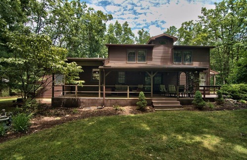 Relax and spread our in this beautiful home nestled on an acre of property in a private lake community in the Poconos. The house is walking distance from the lake and a private pool club (pool open May-Sept) and a short drive to historic downtown Jim Thorpe, Penn's Peak, Lake Harmony, Split Rock Resort, Pocono Raceway, Big Boulder, Jack Frost and the PA Turnpike. The house features three large bedrooms including a huge, private master suite and two large bedrooms with queen beds. There are also air mattresses available and a comfortable queen sofa bed in the living room.