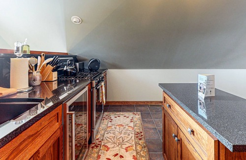 inside the loft, you'll find a well-equipped kitchen with all the essentials, including a stove, oven, microwave, coffee maker, and more Relax in the living room area with a TV and DVD player, or head outside to explore the beautiful surroundings or stay in and play board games and relax.