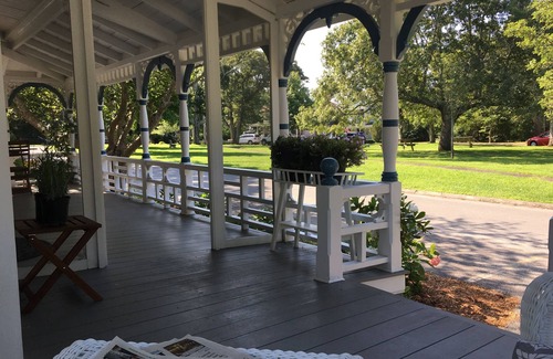 this victorian is very conveniently located, only a 5 minute walk to inkwell beach, circuit ave (restaurants, grocery store, arcade, shops, carousel, etc.), the Martha's Vineyard Camp Meeting Association and Tabernacle (worship services, walking tours, outdoor yoga, community sing, speaker series, concert series, and more!), and Ocean Park (concerts, fireworks, and a great place for the kids to fly kites!). A grassy, shaded boulevard is immediately across the street and is a great place for a game of catch, while Niantic park with its basketball court, playground, tennis & pickleball courts is less than a 10 minute walk away. If you bring a car(s) over, there is tandem parking for two, plus street parking as available, though you can feel free to leave the cars at home.