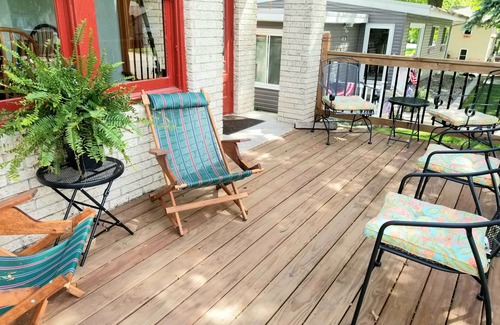 We purchased this hidden gem a few years ago with multi-family getaways in mind. Situated across from the lake with 5 bedrooms, 3 bathrooms, gathering spaces on each level, a patio in back and deck out front, large families and/or groups of friends can comfortably stay here. We have hosted many family reunions, including our own, since opening up this home to lake vacationers. So many memories have been made through the years. what happens at the lake, stays at the lake is our motto!