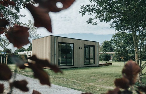 these beautiful accommodations at holiday park de klepperstee can immediately be recognised by the beautiful design of the different types The special and sustainable materials provide these cabins with a very tasteful appearance and the electricity comes directly from our own solar panels. You can choose from a number of beautiful accommodations; instead of TV and radio, they have a good, private WiFi connection. This spacious home, located near the beautiful central building, is designed and built by a local constructor, which truly makes it unique. The natural character is the result of using lots of wood. This type is fully furnished and the kitchen features a dishwasher. You have no less than two terraces at your disposal, so that you can choose between sun and shade.