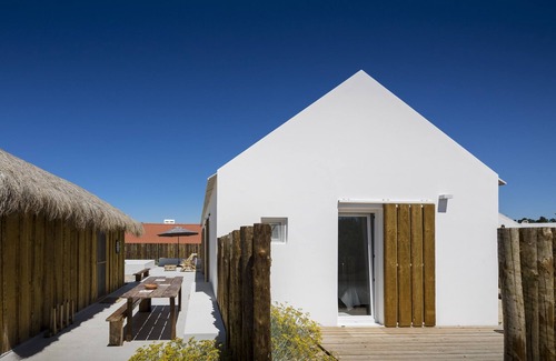 unique feeling of tranquility and well-being Away from the stress of the city, Comporta also has lots of shops, restaurants, bars and local markets, known for their quality and simplicity. The house is on a 600 m² plot, part of Herdade da Comporta, with a three-bedroom house divided into two volumes, the main cement house and an isolated wooden hut and a small swimming pool. everything is thought to be simple and comfortable,