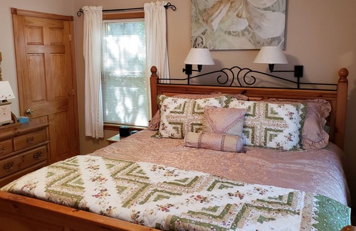 beautifully appointed with luxurious linens, fully equipped kitchen for all cooking needs, full size washer and dryer, gas grill, gas fireplace, large deck with amazing views for sunrise mornings and romantic sunset evenings, walk-out downstairs patio, and plenty of hummingbirds to watch!