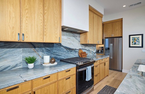 in both bathrooms you will find beautiful materials including wood, tile and upgraded finishings