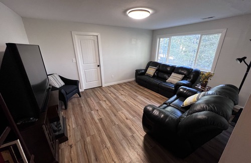 This entire home has all the updates for you to relax and reenergize after a day filled with activities. Use the spacious kitchen to prepare dinner and then enjoy eating on the patio with fantastic views of Split Mountain. Trailer, RV, or boat parking is also available on the property. Take advantage of a shed to store bikes, SUPs, etc. Property is located in front of a farm - enjoy the feel of space and freedom. At harvest time help yourself to the some apricots and apples from the orchard.