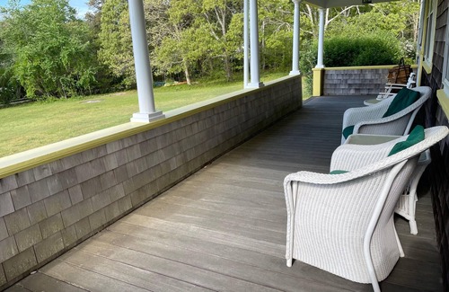 relax and enjoy your summer family vacation in this spacious north chatham home, with a 3-minute walk to the beautiful white sand cow yard landing beach, and steps from scattaree beach and cotchpinicut beach Take advantage of over an acre of land...this sprawling family home offers plenty of space for the kids to run and play, as well as a beautiful setting for your cocktail hour! New outdoor furniture will be added for the 2021 summer season. Featuring two living spaces and a large, updated kitchen, this classic Cape is the perfect spot for relaxing summer days. The sprawling covered front porch overlooks the giant lawn and wildlife preserve below, great for spending your peaceful sunny mornings with a cup of coffee and your relaxing evenings with a sunset cocktail in the afternoon shade. You don't know what peaceful feels like until you on this porch! There is also a second side deck with a grill and outdoor dining area that is perfect for family and friends to gather over a meal. the chatham a's semi-pro evening baseball games, fantastic restaurants, shops and boutiques, friday night band concerts and july 4th parade of chatham downtown are all walkable distance if you prefer to leave the cars at home to walk or ride your bikes!