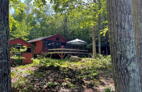 Get away from it all on the most secluded cove of Squam Lake with tremendous wildlife and full boat access to the main lake; a paradise for kayakers, rowers, swimmers, naturalists, fishermen, couples and families alike. 500 Feet of wooded shoreline bordering conservation land. Private dock accommodates 17+ ft boat and recent upgrade include large, low profile float for relaxing or launching a rowing scull or kayak. Three cabins, built in 1960s all within 50 feet of waters edge (Main 25x22 cabin: kitchen, bath, living space and large deck, bedroom and two detached 10 x 10 sleeping cabins. Main cabin has electric heat. All cabins have plenty of fresh air. Non-smoking, no cats. Well behaved dogs welcome with additional cleaning fee and prior approval.