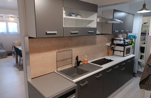 6 minutes walk from the beach (600 meters) and the school center, 3 beds for 5 people, a sofa bed 2 places 140 + 1 bz 2 places 140 + 1 convertible armchairs 1 place (example parents + up to 3 children), the apartment has an entrance with equipped kitchen (2 hotplates, oven, microwave, coffee maker, fridge, dishes, etc), the 3m2 shower room with wc, sink, shower and washing machine , then the main room of 23 m2. cupboard, TV, WIFI Internet, Fan, parking in the closed residence.