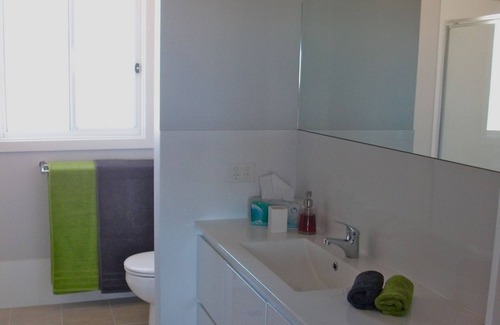 upstairs is the main living room with a large leather sofa plus some bean bags to lounge on, blu-ray/dvd & cd players connected to a full home theatre system, our kitchen & dining (x8), master bedroom plus a separate toilet both the master bedroom and upstairs living area have access to the large hardwood deck (more info below)