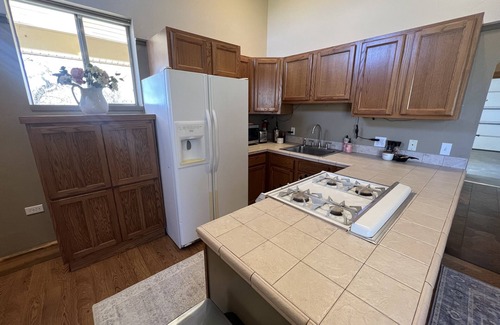 located on our ranch where the night sky is perfect for stargazing! enjoy the private, fenced backyard with amazing views There is lots of space to roam in our 100 acre ranch. We have horses, cows, farm dogs, cats on the ranch. This house is pet friendly.