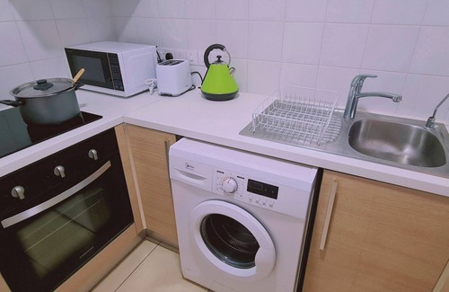 the studio is fully air-conditioned and has a tv, comfortable chair, and a desk for your laptop A kitchen has a fridge, microwave, kitchenware, toaster, a washing machine - everything you need for cooking. There is also a balcony where you can relax. The gym are available for our guests.