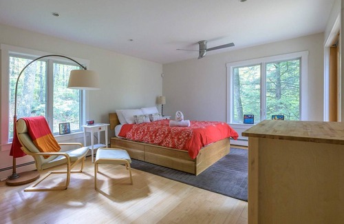 the opportunities to unplug and forest bathe are endless at this special retreat A full wall of windows overlook woods and wetlands where any number of birds and other fauna may be spotted, and the screened porch welcomes a full three seasons of respite, situated to catch Summer breezes; with a fireplace to keep cozy in the Fall. modern, bright, well-appointed, and stocked with games, steepletop lodge is a special place to reconnect with both nature and your loved ones!