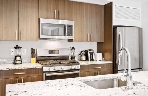 after a day of sight-seeing or working come home to a brand new building with over forty thousand square feet of amenities, convenience and service Resort-style of living in elegant, residences. Your whole family - including the four-legged ones – will be pampered! After playful exercises and walks at the expansive Paw Patch Dog Parks, immerse them in extra tender loving care with a shampoo and grooming at the Pet Service Saloon. Then nourish their appetites with special treats and play periods with other pets during “Yappy Hours.” After indulging them, render to a host of revitalizing outlets for your own well-being at the spa, health club or fitness center. Take a relaxing swim or just lounge on sundeck. Back in the comfort of your residence unwind in state-of-the art living. Wide-plank flooring, elegant baths, gorgeous, fully-equipped modern kitchen with granite counter tops, stainless steel appliances with all brand new and eco-friendly appliances and luxuriously furnished bedrooms.