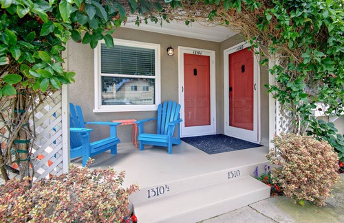 This is a charming (700 square foot), single level one bedroom duplex, one bath, just steps to the sand and 4 blocks from Main Street and and the pier. This is a quiet bungalow surrounded by cozy cottages and magnificent mansions. Fully equipped with full kitchen, microwave, stove and refrigerator. Built-in kitchen 'nook' in dining area. This is a 1 bedroom with a king size bed and 1 queen sofa bed. Beautifully furnished and tastefully decorated with a touch of 'beach funk'! Includes one outdoor parking space.