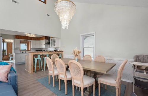 recent home renovations were completed in 2025 with new decking, all new floors, paint, light fixtures and interior doors, complete upstairs master bathroom redo w/ custom tile shower, both downstairs bathrooms updated, new hot tub and all new inside and outside furniture The Chubby Mermaid is a 4-bedroom 3 bathroom house perfect for your escape to the beach. With 1 king bed, 1 queen bed, 6 twin beds, and 1 full bed, designed to sleep 12, there's plenty of room for everyone. Enjoy the coastal living room with a cozy sofa bed for extra guests. All 3 FULL bathrooms are equipped with a hairdryer, some toiletries and towels, and a shower and bathtub to ensure everyone stays refreshed. AC, WiFi, and a washer and dryer are just a few of the amazing amenities provided.