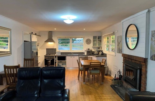 inside you will find 2 large bedrooms with queen beds and bunk beds These rooms have panel heaters to keep you warm at night. These rooms are located off the comfortable open plan living/dining/kitchen area which includes a split cycle heater and a traditional wood burner to keep the house cosy. The living room has a 50 inch smart tv which has access to Netflix, Stan & Kayo. Wifi is provided at the property but we ask that guests are respectful when using wifi as there is a download limit. A selection of board games is available. The dining area has two separate 4 seater dining tables which can be pulled together to seat a larger group. The kitchen is fully equipped with fridge/freezer, electric oven with gas cooktop, microwave, food processor, hand blender and steamer. It will be stocked with tea bags, soda stream and coffee beans from the local Mansfield Coffee Roaster for guests to use in the Breville Barista Coffee Machine. Basic condiments are also provided in the kitchen such as Olive Oil, Ketchup, BBQ Sauce, Mayonnaise and Hot sauce.