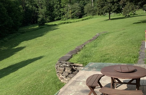 Experience the majesty of the Catskills in our 5 bedroom, 3 full bath getaway. Set on 14 acres, enjoy the panoramic mountain views while sitting by the fireplace. Walk through the woods, and picnic in privacy by the stream. Walk into the village for lunch or dinner or relax in your 3800 square feet of living space with plenty of parking. Our house provides spacious comfort for you, your entire family and all your friends. A perfect place anytime of year..