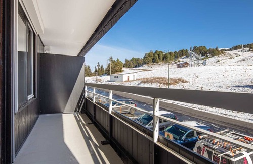 - large balcony with mountain view, ski slopes;