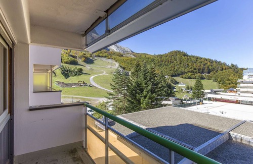 Studio located on the 3rd floor with balcony. View of the Anglas mountain, slopes and Place du Valentin.