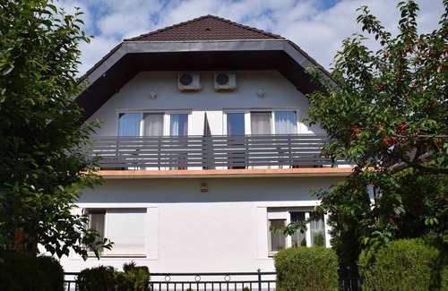 The studio is located in a single-family home, was renovated in 2020 and is furnished in a modern style. The property is located in the town centre. Also due to its quiet and sunny location the domicile is popular. Available for shared use: children's playground, swing, sandpit, barbecue facilities, pavilion, garden furniture and courtyard. Outdoor kitchen with barbecue and gas stove is available.LocationSiofok. The studio is located on a 200 sqm enclosed garden plot with meadow, flowers and trees, bordered by a fence. The landlord lives permanently in the house, but uses a seperate entrance. Access is via a side road (asphalted). Parking (for 1 car) is available on the property. Specialair conditioning.Facilities: internet access (WLAN). TV reception takes place via electric wire, satellite. Transmitter in German, English and Hungarian. Dogsnot allowed. DistancesShopping 300 m, restaurant 200 m, town center 500 m. Siofok: thermal bath, indoor swimming pool, sauna, cinema each 1500 m. doctor 200 m and pharmacy 300 m. Children's playground 300 m. Sports center 500 m, post office 350 m In summer: Balaton 800 m in Siofok (beach 800 m in Siofok featuring meadow). Siofok: tennis 500 m and fishing 800 m. DivisionStudio, 1 floor, 1 room (including 1 bedroom), 30 sqm, in total 2 beds. roomthe entrance to your studio is located on the 1st floor