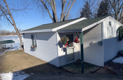 450sq ft studio cottage house on the fox river. Minutes from Omro, Winneconne, or Oshkosh. Boat launch one block away, dock outside your back patio door. King bed, twin trundles, and futon. Full kitchen with full size refrigerator. Perfect for a fisherman getaway..