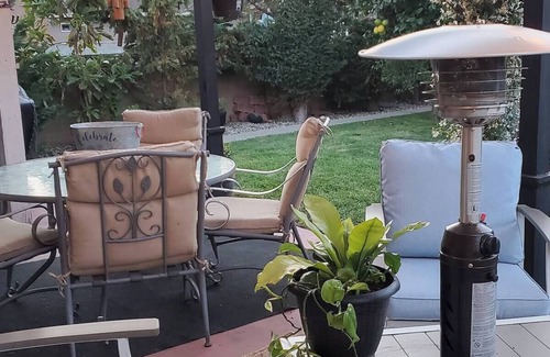 the space kitchenette full equipment refrigerator, microwave, electric range, portable oven, coffee maker, electric boiler, we provide plates, silverware, glasses, everything you need to cook Space with table to eat or work, while enjoying the privacy of our place. One queen size bed, where accommodate two people, . A full bathroom . Garden with patio to enjoy it out side your morning coffee . Free parking on the street 24/7 first come , first served Except on Thursday between 9 am and 11 am because there is a street cleaning.