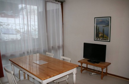nice renovated studio on the ground floor with large bay window and south facing balcony facing the slopes in savoyard residence