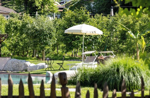 the apartment includes a furnished balcony, from which you can enjoy the impressive view of the mountains while having breakfast together In the shared outdoor area you will also find a well-kept garden, which invites you to relax. Here you can refresh yourself in the solar-heated swimming pool with pond area, children's area and Kneipp area (without added chlorine) or sunbathe on the large wooden terrace on one of the comfort loungers.