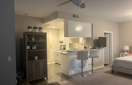 guests will have access to the entire studio The studio is attached to the main home, which could be rented or occupied by the home owner, but there is no shared spaces. Guests will have 1-parking spot on premises.