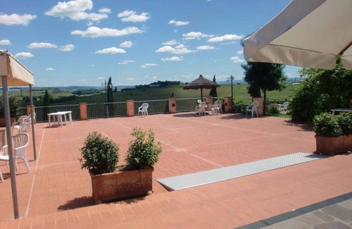 The studio is located in an apartment house and is furnished in a modern and typical country style. The property is located on a farm, on the outskirts. Also due to the view over a panorama from the property and its quiet and sunny location the domicile is popular. Available for use: sunbathing lawn, children's playground, swing, barbecue facilities and terrace.Holiday resort1 restaurant and common room. For dinner, we spoil our guests with Tuscan specialties, which are served in the restaurant or on the terrace at the main house. On our farm we produce wine from the region. LocationSan Zio. The studio is located on a farm, on a 300000 sqm garden plot with meadow, flowers, shrubs and trees. The holiday apartment is located in Cerreto Guidi, in the rolling hills of the area between Montalbano and the Arno river. A place that offers the opportunity to experience authentic Tuscan life in the midst of the peace and beauty of nature. Parking is available on the property. Specialair conditioning.Facilities: internet access (WLAN).For your safety, the accommodation is equipped with CO2 detector and fire extinguisher. PoolAll pools are available for shared use. Outdoor pool (usable from early April to mid October, 6 m x 12 m). LeisureIn the complex: bike rental. Experiences on request: swimming pool for dogs (hourly rate) - guided tour of the cellar with tasting of our wines, in partnership with Cantinge Leonardo da Vinci - alpaca hike through our vineyards with farmer's snack "Merenda" - horseback riding for experts and beginners - cooking course Dogsnot allowed. DistancesShopping 3 km, restaurant 20 m, town center 3 km. Fortress Vinci and Leonardo Museum 5km, Florence 40km, Pisa 60km DivisionStudio, 1 floor, 1 room, 45 sqm, in total 3 beds (including 1 additional bed), on request additionally 1 child up to 2 years in a baby cot. Room Living/bedroom (30 sqm) with 1 double bed, 1 additional bed on couch/sofa, 1 baby cot, sitting area, TV and dining area (4 seats). Kitchenette in the living & bedroom with gas stove (4 flames), fridge (icebox) and microwave. Bathroom with shower, WC and bidet. Terms of lease and pricesIncluded in the priceOutdoor pool, air conditioning, parking place, electricity, gas, water, heating, final cleaning, bed linen, hand towels, pool, baby cot – please order at booking, Wireless Internet access. Side costs-Costs on the spot:/Obligatory:local tax by local tariff (if charged).Deposit:No deposit..