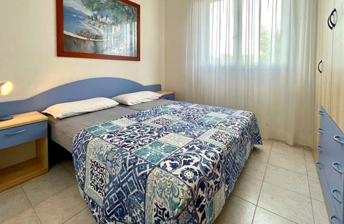 guests have a swimming pool for adults and a small children's pool, solar terrace, indoor and outdoor parking spaces, elevator, in common areas or by the pool wifi, animation for children The apartment is modernly equipped, has a full bathroom with shower, TV, coffee maker, air conditioning. The apartment is composed by a living room with kitchnette and it includes a sofa bed for two guests, a double bedroom with an extra bed and another bedroom with a double bed.