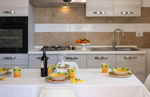 in the very south of puglia, in the province of lecce, in a quiet, tranquil coastal village you will find this modern, bright apartment With harmonious, warm furnishings, you can feel right at home and set up for an excellent vacation. Ideally suited for a small family, you can expect comfort and carefree days.