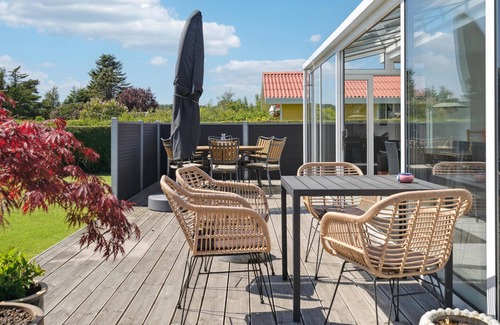 in the north of the island of funen, just 150 meters from the sandy beach, this inviting vacation home welcomes you The bright and well-equipped interior makes a homely impression and provides a good setting for a comfortable vacation. Spend cozy days in the spacious living room and gather in the evenings around the dining table in the kitchen or in the winter garden while looking at the greenery.