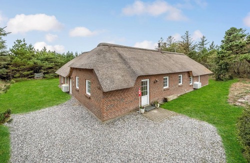 Only two and a half kilometers from the popular seaside resort of Søndervig lies this cottage with its beautiful thatched roof. It is equipped for 14 people and therefore offers plenty of space even for the large family. Or even two families, because divided into two areas you will find the six bedrooms. In the middle is the spacious kitchen-living room. In the house are also two bathrooms and a nice pool area with whirlpool and sauna. There is also a pool table. A sunny terrace awaits you in front of the house and the children will find opportunities to romp around on the property. Søndervig is known for its location on the North Sea and the impressive sand sculptures. You can also shop well, play mini golf and visit several good playgrounds with the children. From the pier you can fish.