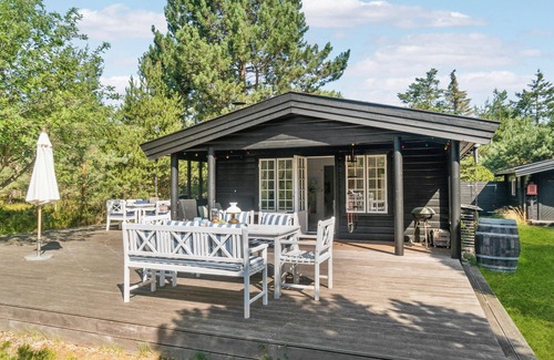if you are looking for peace and privacy, you will find it in this cosy holiday home on a wooded natural plot! inside, you will be greeted by brightly coloured accommodation that exudes an inviting feel-good atmosphere Cosy up together on the sofa, light the fireplace on chilly evenings or play a board game at the dining table. You can sunbathe on the large wooden terrace or enjoy your barbecued meals and make plans for the days ahead.