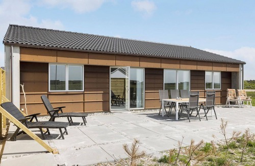 escape from everyday life and experience the breathtaking nature of the danish west coast Your modern vacation home, surrounded by beautiful countryside, invites you to relax in peace and enjoy the beauty of nature. The vacation home is flooded with light and offers a wonderful view of the surrounding countryside. The spacious living room with its comfortable sofas and modern dining area is ideal for shared meals and socializing with the whole family. Relax here after a long day of adventure.