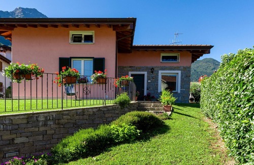 gigliola is a detached, single-family house in the curcio district, situated 2 km from the center of colico, italy It offers a private, fenced property spanning 450 m2 with a lawn, ideal for a vacation rental. The house features a yard, Internet WiFi, and parking facilities.