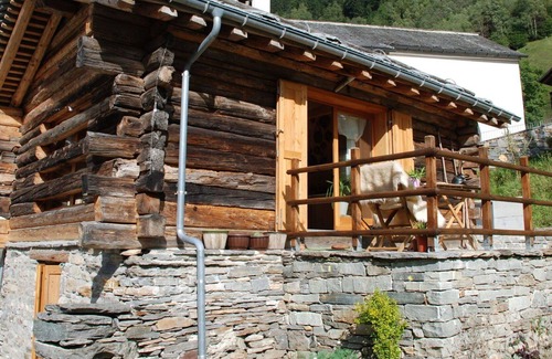 "rustico melograno", 2-room chalet on 2 levels Object suitable for 2 adults + 2 children. Spacious and bright, comfortable and cosy furnishings: open living/dining room with 1 sofabed (140 cm, length 200 cm), TV (flat screen), radio and electric heating. Exit to the terrace. Open kitchen (oven, dishwasher, 2 ceramic glass hob hotplates, fondue Set (cheese)) with dining table. On the lower ground floor: open, 1 double bedroom with 1 french bed (1 x 140 cm, length 200 cm). Bath/bidet/WC. Wooden floors. Terrace, south facing position and west facing position. Terrace furniture. Marvellous panoramic view of the mountains, the valley and the countryside. Facilities: washing machine, dryer, iron, baby cot for up to 2 year olds (extra), hair dryer. Internet (WiFi, free). Please note: non-smokers only. Fire extinguisher.