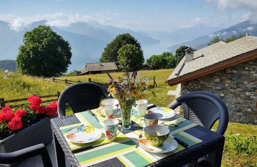 discover the beauty of "rustico" cottage "il nido d'aquila", a charming vacation rental nestled at an elevation of 1'150 meters above sea level This cozy dwelling, built in 2013, is surrounded by picturesque meadows, offering a serene escape from the hustle and bustle of everyday life. Situated in the hamlet of Bodone, just 12 km from the center of Gravedona, this property boasts a private fenced garden spanning 500 square meters, complete with a terraced lawn, providing ample space for outdoor relaxation. With amenities such as a yard, internet WiFi, and parking, you'll find all the necessary conveniences for a comfortable stay.