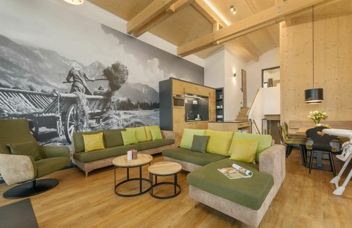 the resort features a central parking area, and loading/unloading of baggage is possible at the holiday house The owner does not accept youth groups, and the complex is car-free. Long-term stays (over 21 days) and corporate bookings are possible upon request. The photograph provided shows a typical example of the accommodation, but all houses/apartments are individually designed and furnished.