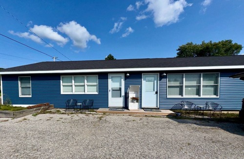 the apartment is a 1 bedroom 1-bathroom middle unit of a single-story building with 3 apartments total The property was recently purchased and beautifully refurnished. The location is in the center of Onekama village with shops and restaurants in both directions. the property includes: