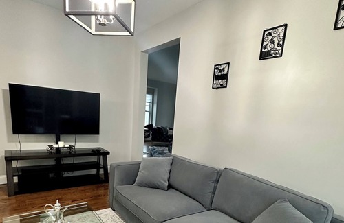 relax in a living room that radiates generosity and charm The house offers two living rooms and one family room including a TV room that has an 77” OLED screen and a cinematic sound system. The primary suite includes a gorgeous master bedroom which has a masterful L shape desk facing the outdoors and a monitor. The suite bathroom offers, oversized shower and tons of closet space. All other bedrooms have plenty of space for sleep, work & play. A majority of the home has gleaming hardwood floors & tons of windows that flood the space with natural light. The fully equipped modern kitchen awaits, stocked with all the essentials including cooking basics. The fully finished basement level offers a living room, which includes the movie room, PingPong and Pool table, indoor gym, board games, cards, and includes a full bathroom. Step outside to the vast and open yard with a charming gazebo, a barbecue to enjoy with family, a soccer goal for playful afternoons, and a variety of outdoor games. Cherish the dining on the massive Patio or Deck, furnished with comfortable seating amidst the beauty of nature. All the peace and quietness you are looking for in a home that has been charmingly decorated and furnished using imperishable materials, earthy colors, and lounge-like comfort.