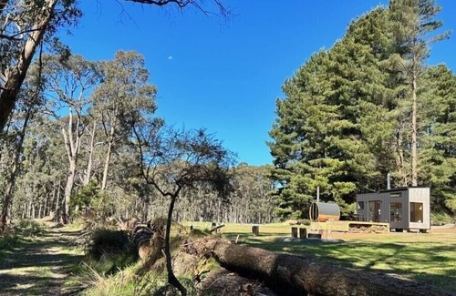 Welcome to our modern tiny home on the edge of the stunning Wombat Forest in Trentham, Victoria! Get ready for a one-of-a-kind off-grid adventure with a cozy twist.
