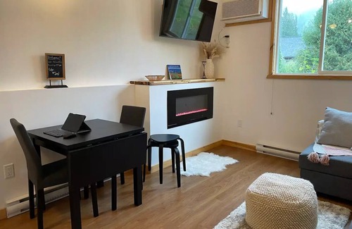 this recently renovated suite boasts a cozy fireplace, electric sauna, and fully equipped custom kitchen you can warm your toes, sip some tea and melt away soreness after a day on the slopes or trails!