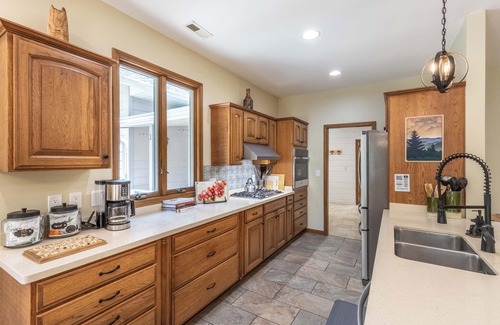 the interior is thoughtfully designed with your utmost comfort in mind A fully equipped kitchen stands ready to fulfill your culinary desires, while the inviting living room, graced by a gas fireplace and smart TV, beckons for cozy evenings with loved ones. The expansive dining room sets the stage for memorable gatherings, and an array of board games guarantees endless entertainment. Stay seamlessly connected with great WiFi, allowing you to remain in touch with the world or simply share your vacation moments.