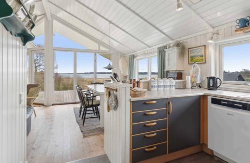 the cottage can accommodate 6 adults, divided into 3 bedrooms, 2 with double beds and 1 with bunk beds In addition, there is a bathroom incl. washing machine and open kitchen with dishwasher, fridge and freezer. The view over the water can be enjoyed from the kitchen, dining room, living room and alcove, which contains a daybed as well as lots of books and games.